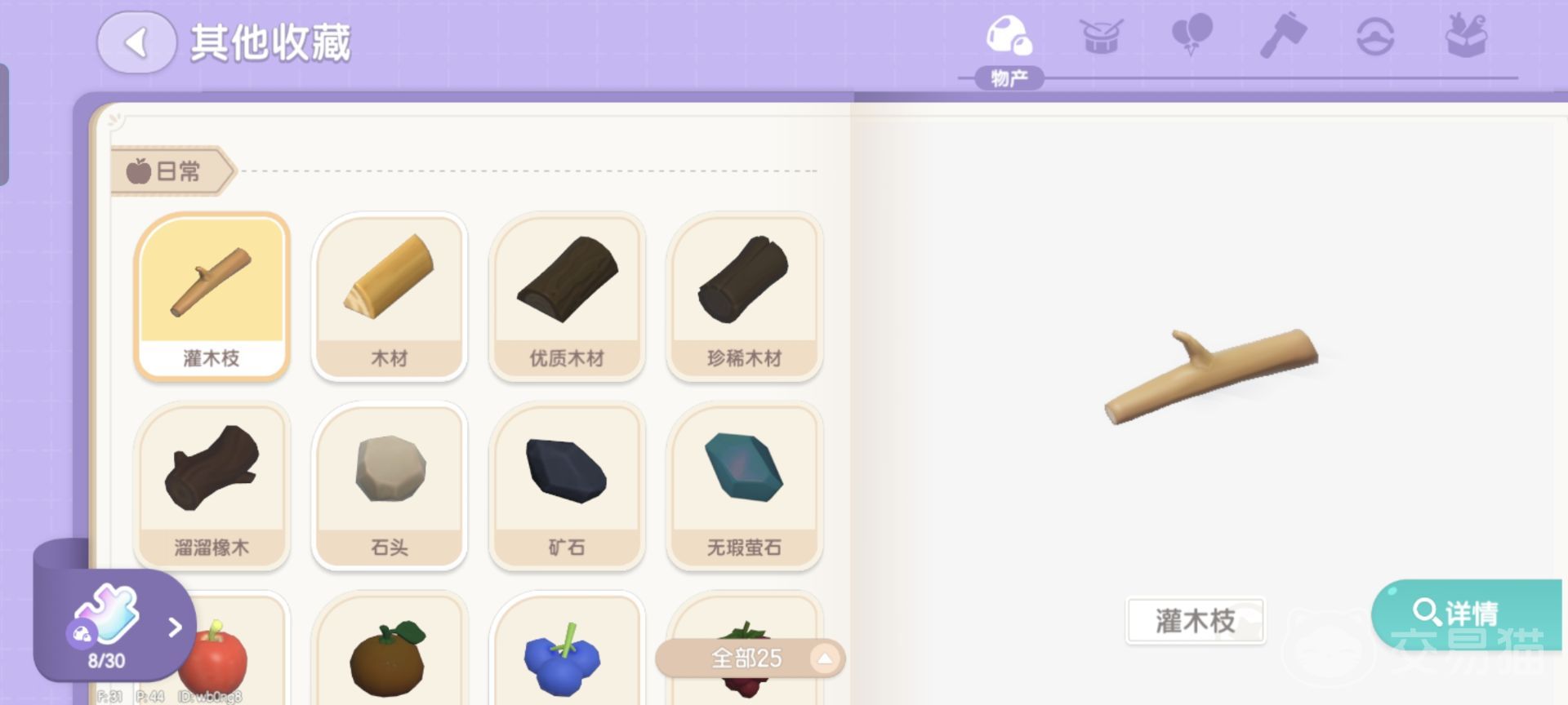 在游戏中虽然有些很多需要玩家收集的资源,但是却有两种非常稀有的资源需要玩家每天上线进行收集,这两样材料分别是溜溜橡木和无瑕萤石,这两种材料一天只能够收集1个,如果今天没有收集的话那就只能错过了,这两种材料对于玩家来说是非常重要的,后期制作家具非常的需要它们。