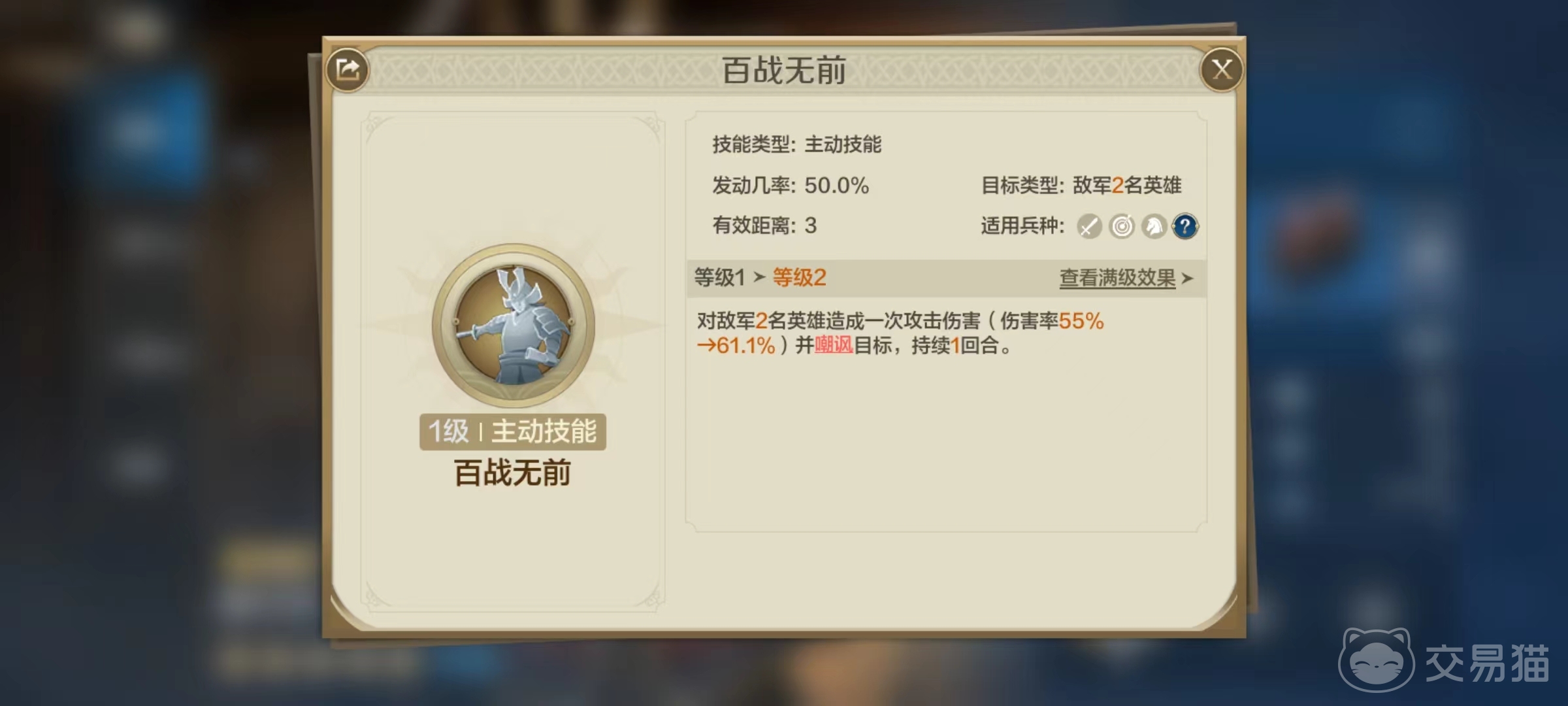 作为肉盾,源义经也具有控制效果,它自带的主动技能百战无前,满级时有50%几率发动,对两名敌方英雄造成一次伤害,最多伤害率为110%,并嘲讽目标,持续一回合。嘲讽之后对方将使用普通攻击强制攻击嘲讽者。作为肉盾,有了这样的效果就能够将大多数输出吸收到自己身上,这样就起到保护队友的作用,所以源义经在团队方面的地位比较高,是目前肉盾中很好用的人物。