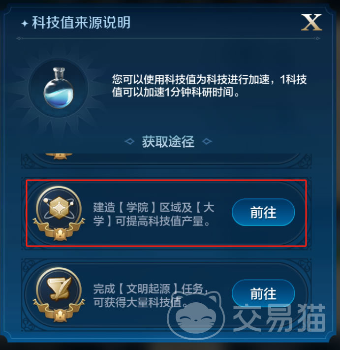 科技值的来源在游戏中是比较多的,不过遗迹和大学是比较稳定的产出渠道。修建大学是在主城中进行,并不需要城外土地。前置建筑物是解锁市场、城墙、动员大厅。