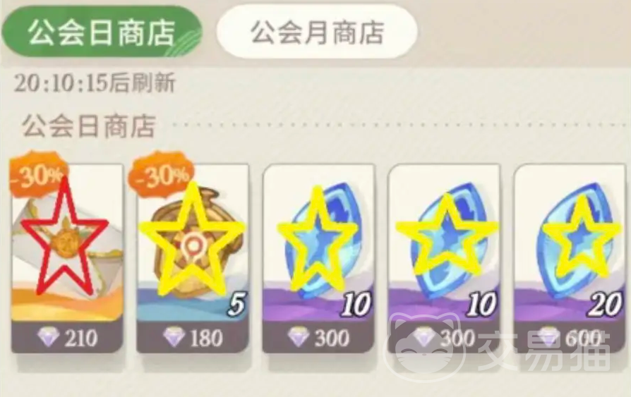 公会商店包含每日商店和月度商店,很好理解日商店就是每天刷新,月商店是每月1号刷新,每日商店看到好东西要尽快买,每月商店则可以放慢节奏。
