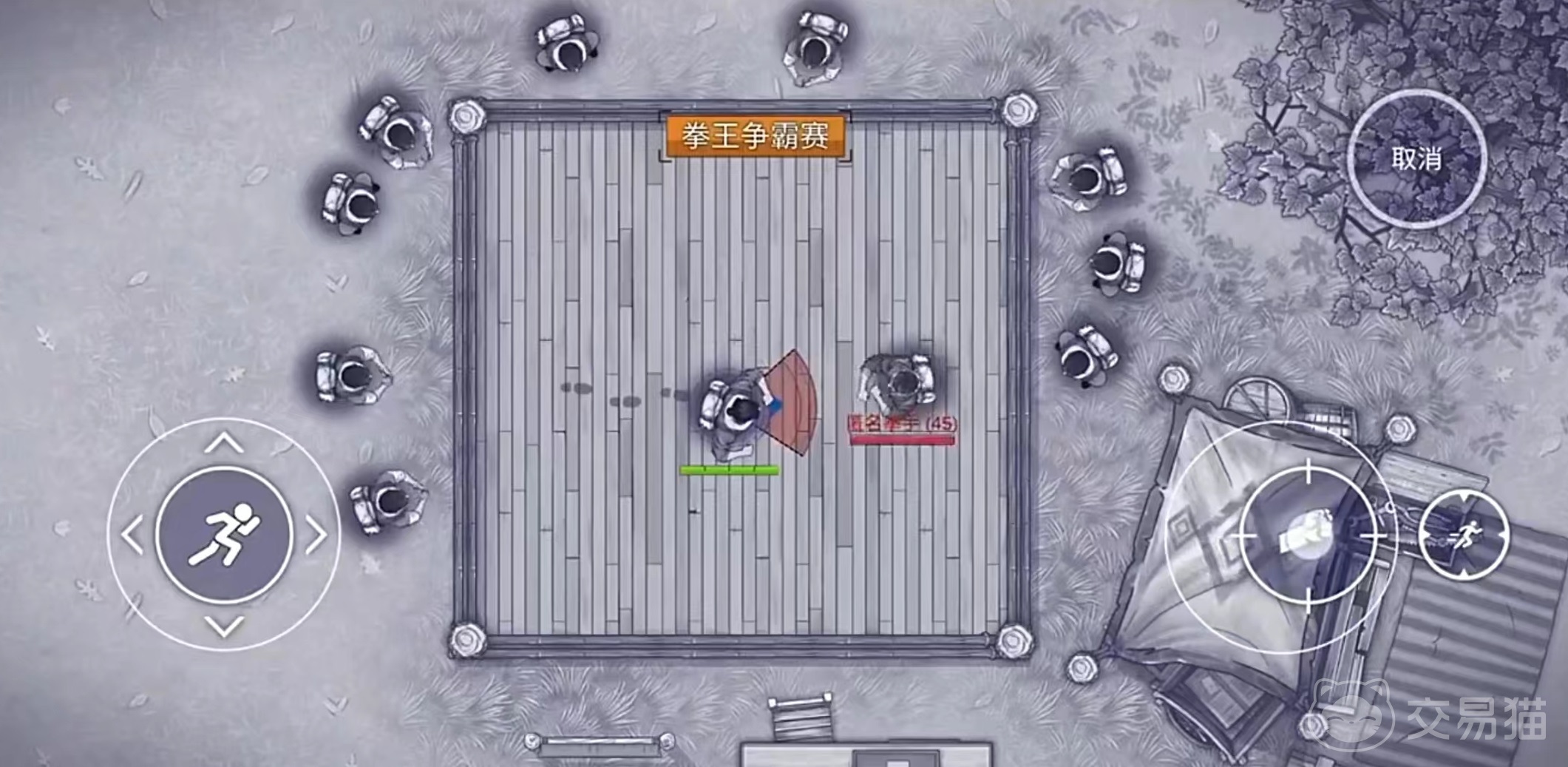 首先来看一下大家在比赛过程中可以进行的操作,当两人站在擂台上的时候,双方都只能进行简单的攻击和躲闪。在进行攻击的时候,有轻攻击和蓄力攻击的不同分类。蓄力攻击伤害高,但需要一定的蓄力时间,再加上躲避,这就构成了整个对战过程中的操作技巧。