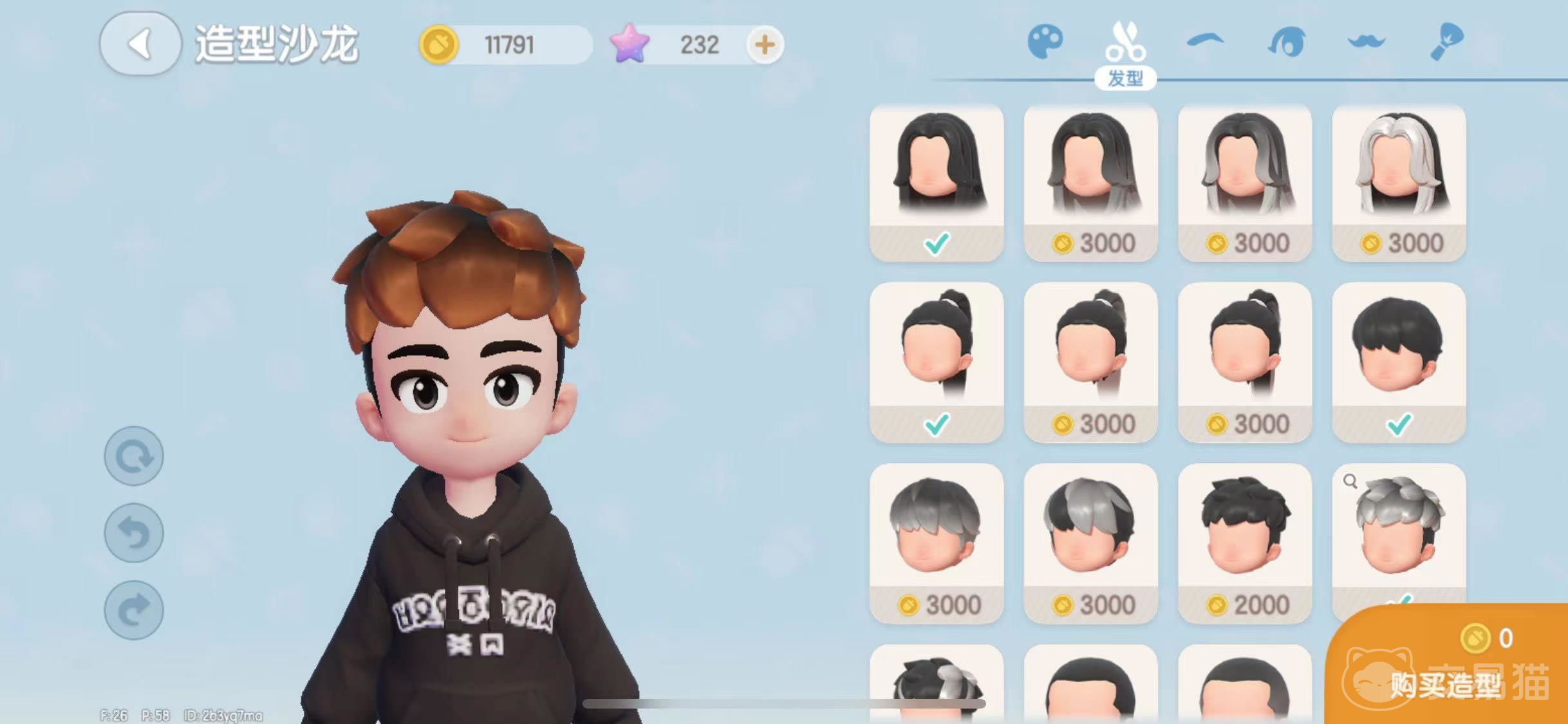 原来这里叫做“造型沙龙”,提供各种美妆产品可供选择,如果要换发型,选择右上第二个剪刀图标就可以看见了。这里的发型款式琳琅满目,选择自己喜欢的可以试一下效果,满意后点击右下角购买造型,会提示是否立刻换装。一般的发型都可以通过金币购买解锁,也有部分需要“满愿星”进行兑换获得。所有已经拥有的款式,就不会再有标价,而是打勾表明已经拥有的状态。