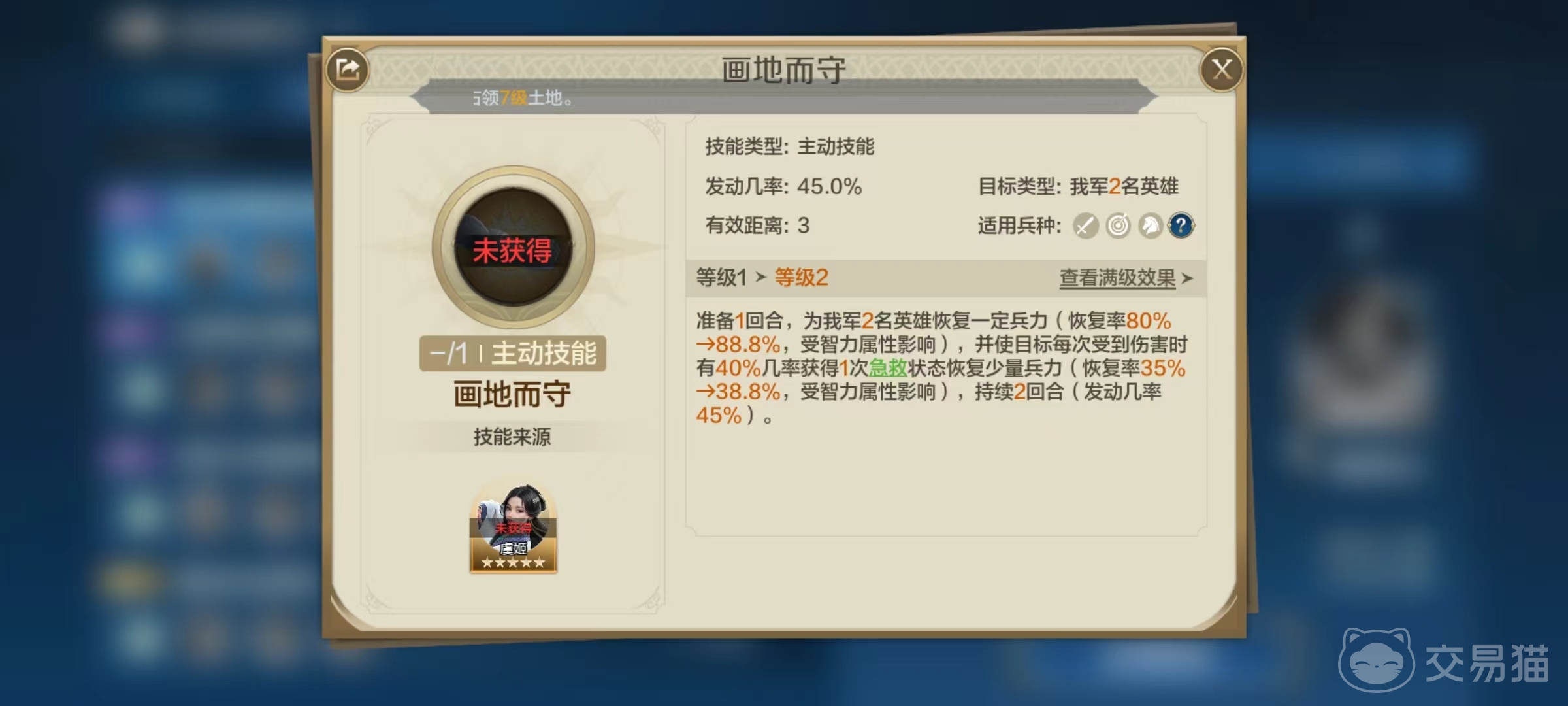 对于辅助来说,如果只有治疗比较浪费自身其他属性,所以搭配一个控制可以使阵容的实用性更加广泛。画地而守还可以替换成洗兵牧马,同样是一个辅助类型,准备一回合后为我方伤兵最多的英雄和另一个随机队友恢复兵力,并进入疗伤状态持续恢复。