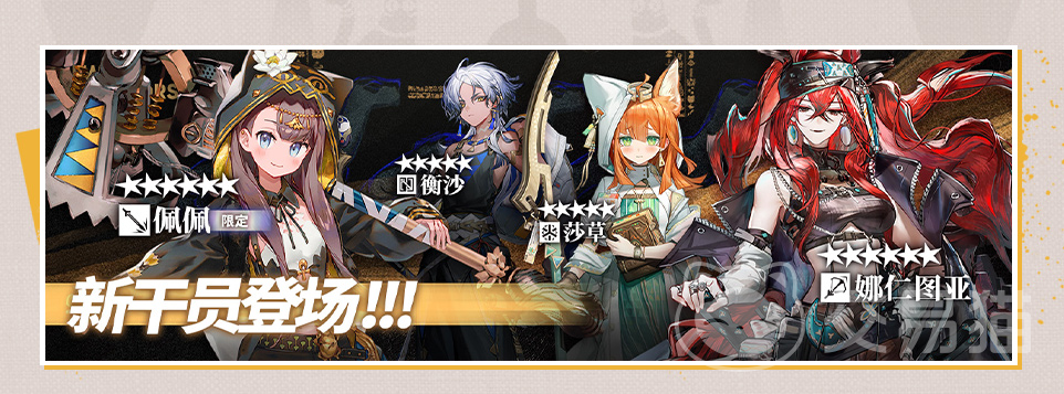 6星限定干员“佩佩”,6星干员娜仁图亚,5星干员衡沙,5星干员莎草。其中佩佩累计300次可以额外获得1个,同时活动期间登录也可以在活动页面直接领取一张“闪耀寻访凭证”,可以进行一次限定10连。