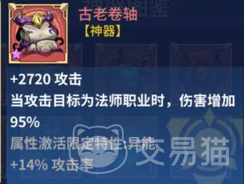 考虑到辛芭拉雅本身拥有异能属性,另一种可行的装备选择是【古老卷轴】。携带这个卷轴可以激活额外的攻击率属性,从而进一步提升她的攻击力,也增强了她在团队中的作战效率。