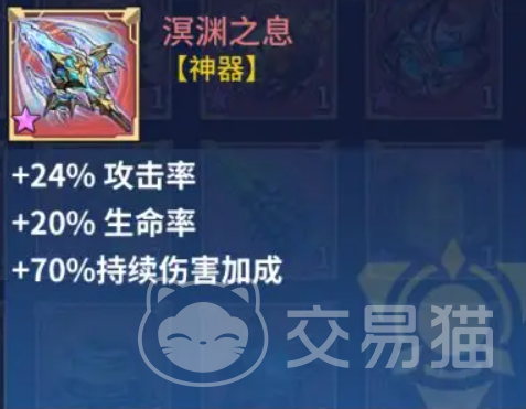 辛芭拉雅的最优装备选择无疑是【溟渊之息】,它提供了+24%的攻击率和+20%的生命率,同时还极大地提升了持续伤害加成,高达70%。这种加成与辛芭拉雅能够叠加的多回合【燃烧】效果非常契合。
