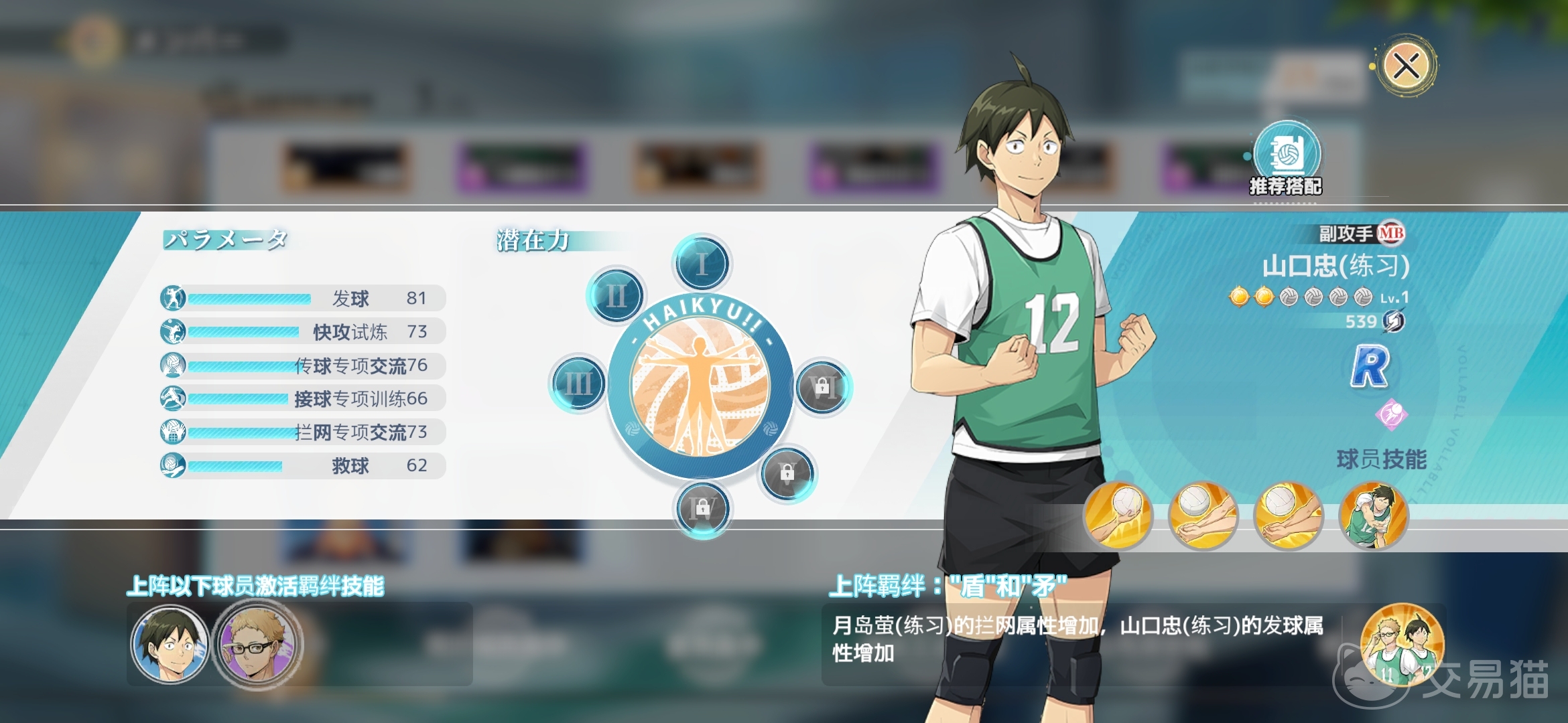 排球少年手游山口忠值得培养吗 山口忠球员技能介绍