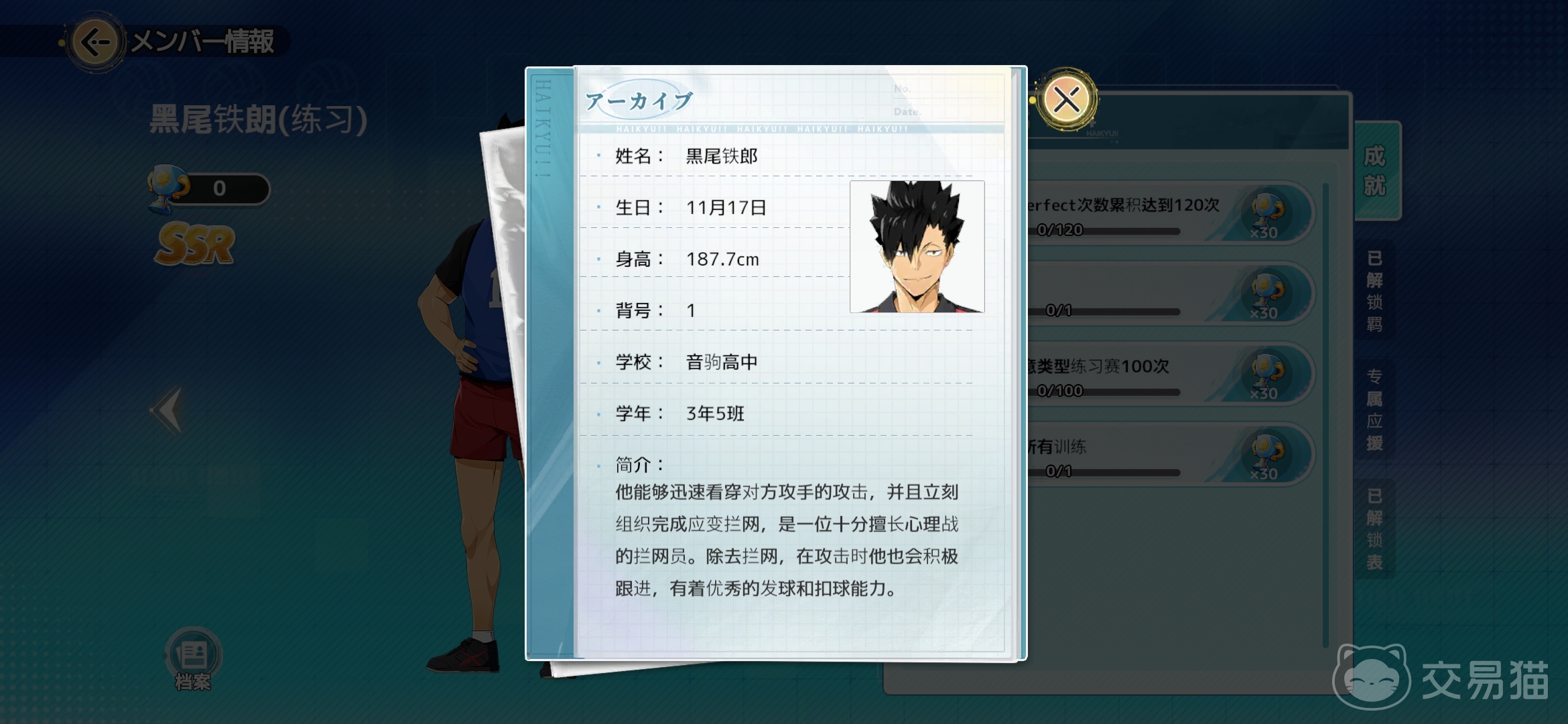 黑尾在游戏内是目前最顶级的SSR卡,可见官方对于他实力的认可程度,作为队伍中的副攻手mr,比较出色的两个点是快攻和拦网,当然接球和传球能力也是要高于其他sr卡的,音驹高中同样作为副攻手的橙卡灰羽和他的长处其实差不多,所以他俩一起上场攻守兼备。