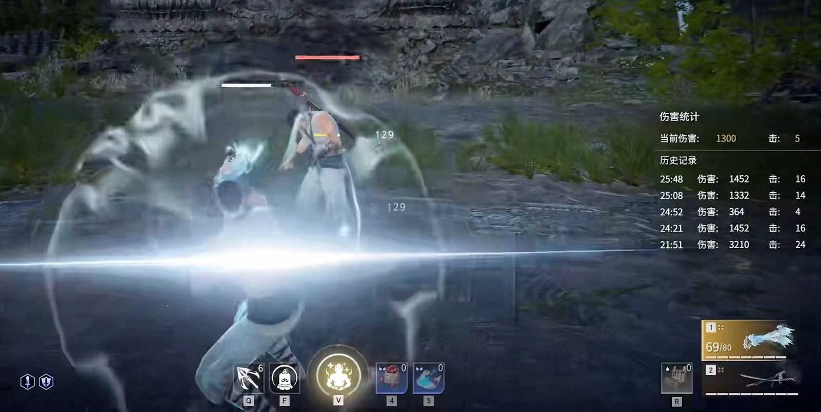 第1个技能是盘龙棍,需要蓄力以后释放快速挥动棍子,向前方进行连续打击。第2个龙虎功,当被攻击或者是成功振刀之后,就能够累积效果,最多可以提高至4段。第3个横栏,在平击蓄力中消耗之前积攒的一段龙虎功,抵挡敌人的蓝霸体攻击,并找到机会进行反击。