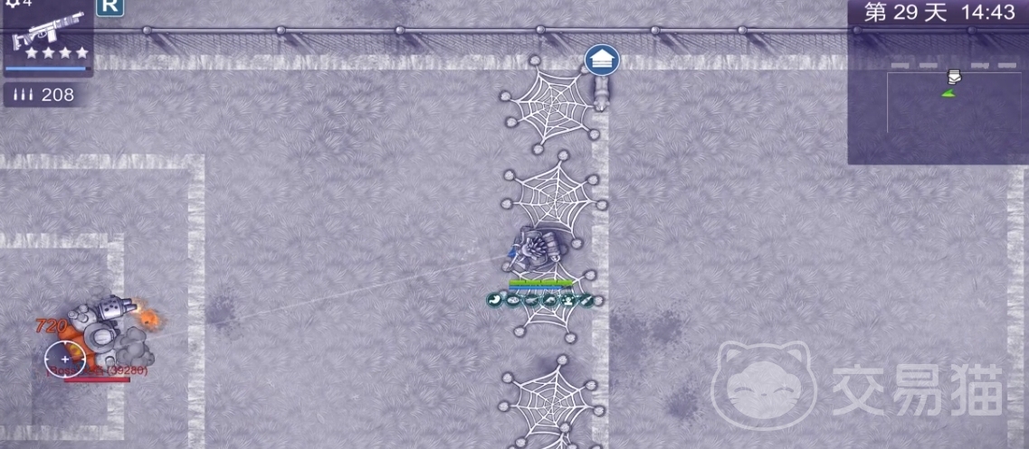 一旦进入战斗模式,现在地图的交接处设置好蜘蛛网陷阱,这样能够大大降低两个小怪的移动速度。在对战过程中就是灵活走位的同时及时射击。这两个小怪一个拿火枪会对你造成大量的伤害,一个拿液氮枪喷射,一旦被射中会减低你的移动速度。好在他们射击时会有射程范围提示,及时走位离开射程范围即可。