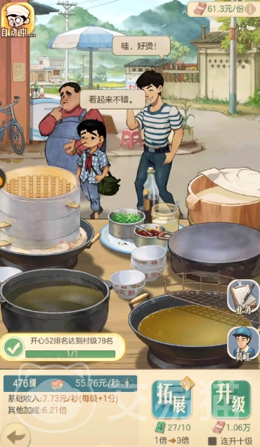 在游戏初期玩家能经营的产业只有一家早餐店,玩家的第一桶金就来自于这里,通过不断的增加早餐的样式来提升收益和培养人才,当【小凤】能独挡一面时玩家就能开启新的产业了。