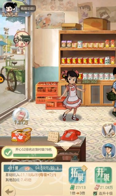 继早餐店之后玩家能解锁的就是【小卖部】,小卖部内能售卖各类零食、饮料、玩具等,这个店铺的收益会远远大于早餐店,不过当小卖部货物卖空了的时候需要玩家自己通过游戏来进货。但是【小卖部】有个好处是能通过放置摆件来提升收益。