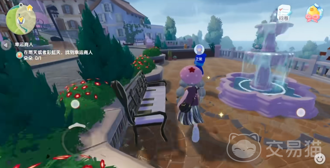 首先天气预报可以在手表处查看,朵朵的位置在文艺界的喷泉处,还是非常好找的。不过朵朵在晴天是不会出现的哦,只会在雨天和彩虹天出现,而雨天的也是有时间范围的,大家一定要好好注意天气预报呢。