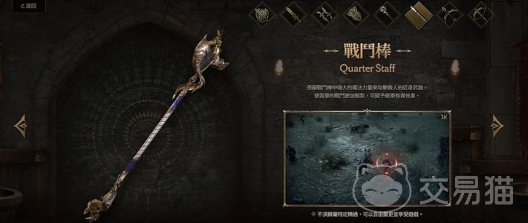 其中手杖比较适合魔法师来进行选择,而弓箭和石弩比较适合远程攻击的角色来使用可以快速的削弱敌人的输出,造成爆炸性的伤害,精准的进行瞄准,而剑与盾牌还有战斗盾牌,可以帮助大家更好的进行防御,比较适合近战来使用,保护自己的安全,在战斗过程中释放爆炸性的力量,而长剑和短剑,可以在战斗时来增加自己的攻击能力,强化移动的速度与攻击的伤害,来压制单个的敌人,强化自己的输出。