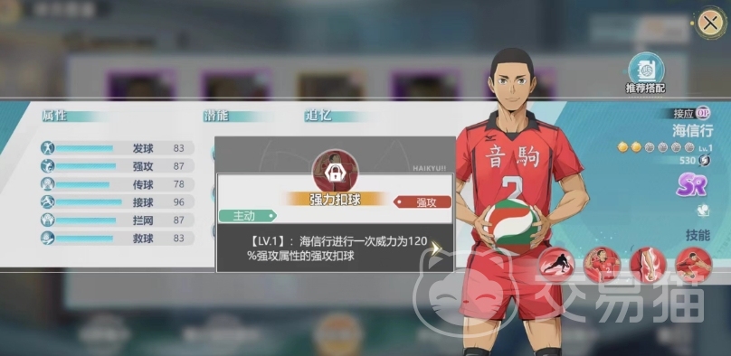在排球场上,其实跳发球球是一种常见的攻击手段,所以掌握接球技能的选手可以将其转化为自身的优势,而海信行正好就是其中之一,当对手使用跳发球时,这项技能将赋予他额外的力量,让他在对抗中占据上风,