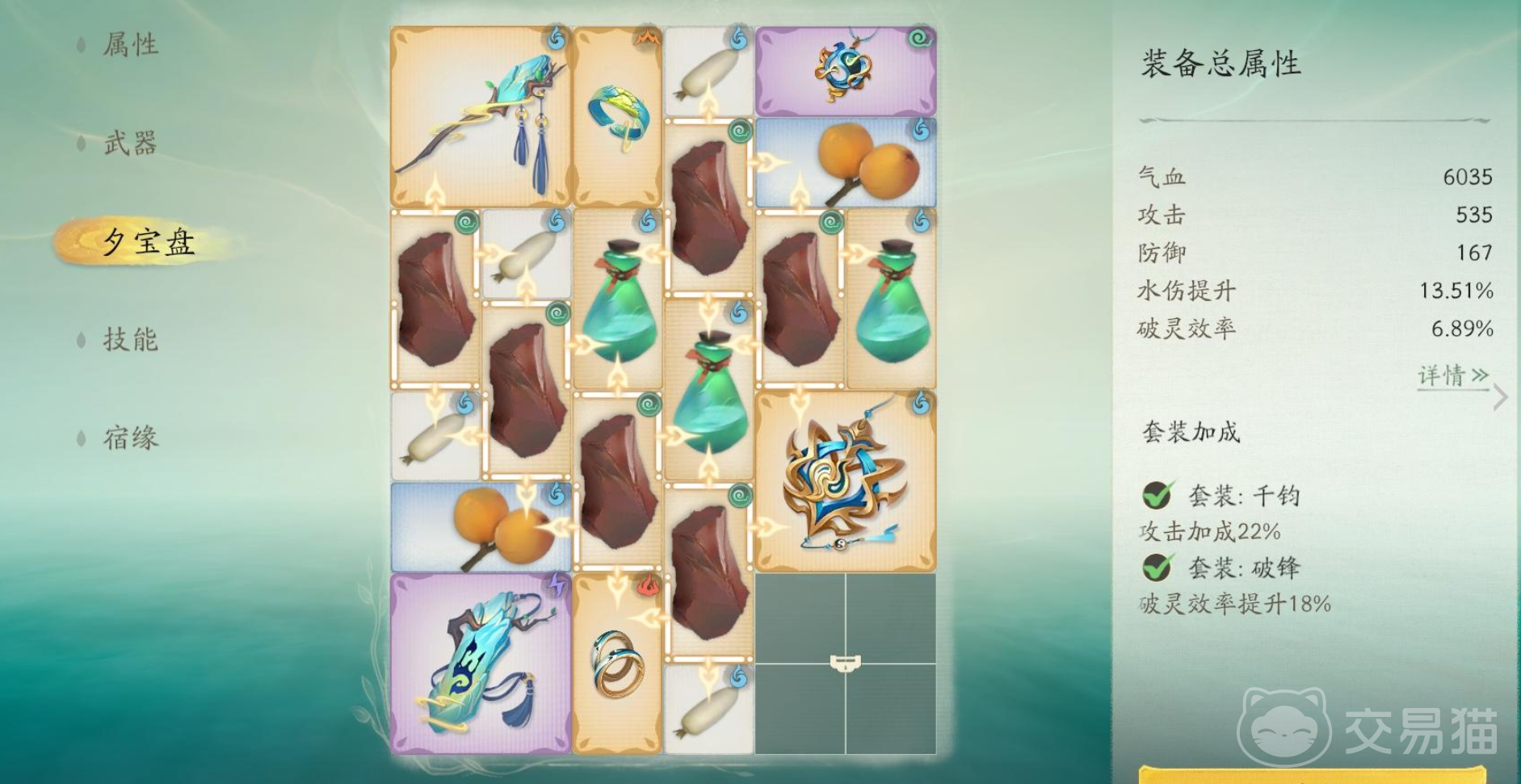 当小伙伴们往夕宝盘上装配上合适的宝物之后,可以达到鉴定灵纹的效果,因此小伙伴们需要为每一个角色安排上合适的装备或者道具,以求达到最强力的属性效果。根据目前的信息小伙伴们可以得知,游戏中的头饰是水属性,手环是火属性,戒指是土属性,项链是风属性,腰坠是水属性,道具的话则是分为4种属性,是随机分配的,因此这个就比较看运气了。
