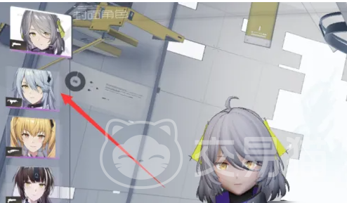 大家如果想要在尘白禁区的主界面中更换老板娘的话,玩家需要先点下自己主界面中的人物角色,把角色选中以后,可以看到在人物角色头部的左边有一个双箭头的标志,这个就是我们更换老板时需要用到的切换功能。