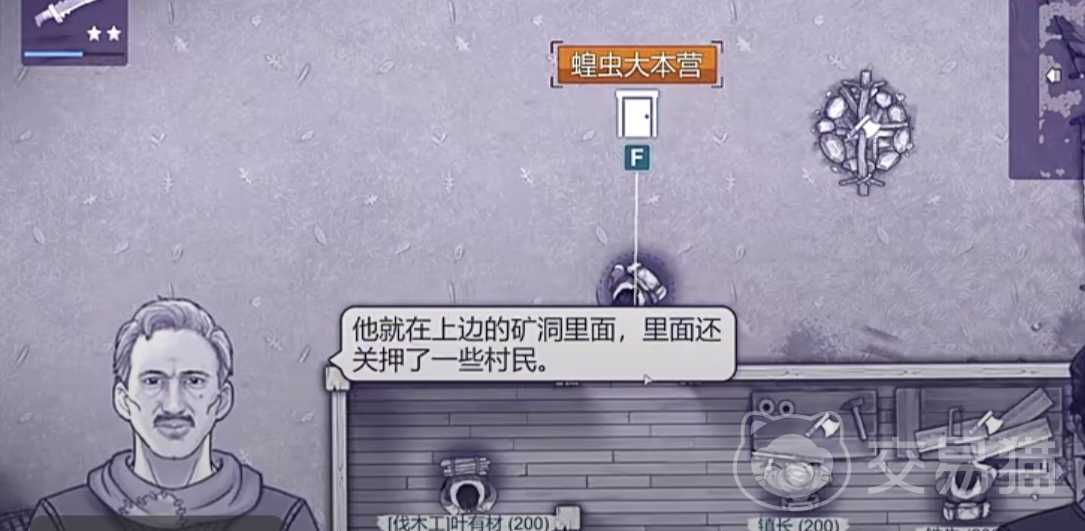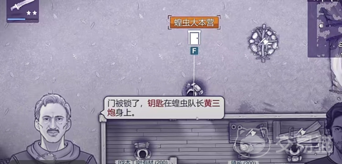 蝗虫队长是一个血量高达150点的野怪,为此玩家在和蝗虫队长战斗的时候一定要注意自身的血量哦,而且蝗虫队长的武器是枪有着很大的杀伤力,大家一定要注意躲避,击败蝗虫队长以后在它的身上找到钥匙打开关押村民的房间就完成这个任务了。