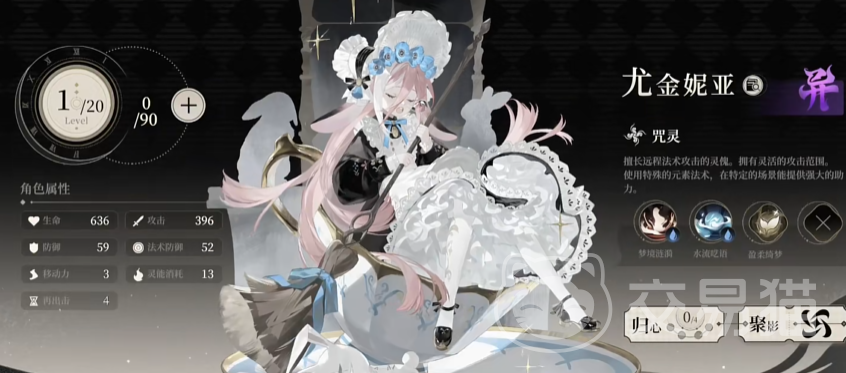 尤金妮亚其实是锦罗城保洁公司“清道夫”的员工,与养父杰克·费尔南多一同创立并经营这家公司。在游戏中,她会以兔子妖鬼傀的形态进行战斗,同时在水属性的加成下,会使用“霜糖之梦”武器来对敌人造成大量伤害。作为咒灵职业的灵傀,尤金妮亚的攻击方式多数为远程类的,而且自身的机动性非常的高!能够在特定的场景中提供强大的助力。但是这里还是需要注意的使,由于尤金妮亚的定位问题,所以在游戏当中,小伙伴们可以利用尤金妮亚的远程攻击方式,在拥有行动点数的时候,优先让盾卫类的角色先进行行动,在去考虑尤金妮亚出手的时机!
