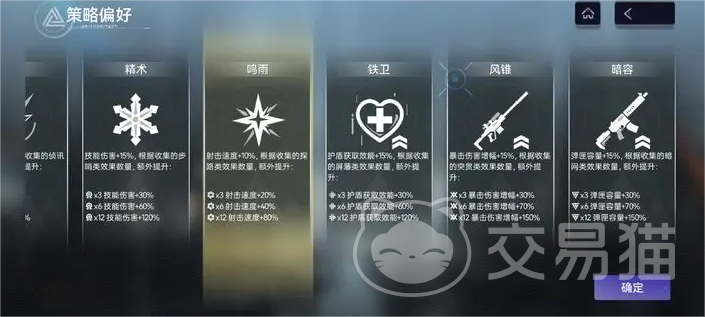 同时再进入战斗前,玩家可以根据自身的喜好,来选择相应的策略偏好。每个策略偏好都对应了某种类型的buff,才收集一定量buff后便可激活策略偏好,来提供额外的buff加成。
