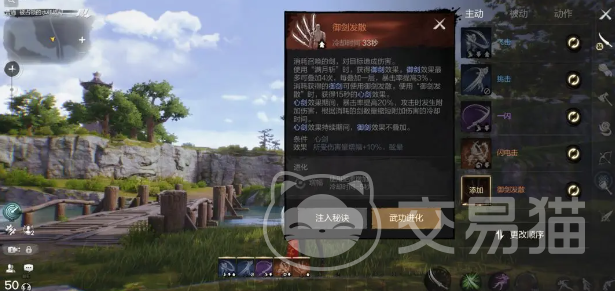 御剑发散:在使用技能之后,玩家将得到御剑效果,暴击几率可以提升到20%。在攻击时还将额外的发生附加伤害,根据所消耗的数量能缩短冷却的时间。在持续期间不会叠加御剑效果。