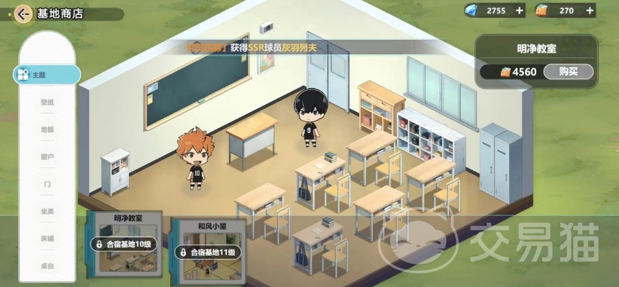 这个商店中大家可以购买的物品有很多,最基本的就是基地的主题,类似明净教室、和风小屋这种,就会改变整体的背景,壁纸、桌台、地板以及窗户这之类的结构就是大家可以购买的家具,不同的家具价格不一样,而且舒适值越高的家具价格越贵,还有等级的限制。