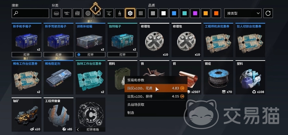 要获取铜材料,目前最直接的方法是在市场上购买,玩家登录游戏后,点击界面顶部的市场图标进入市场界面,在搜索框中输入铜并搜索,找到铜材料后点击商品进入购买界面,选择所需的数量后即可完成购买,价格会有上下浮动,另一种方式是通过参加PVE战斗来获得铜材料。