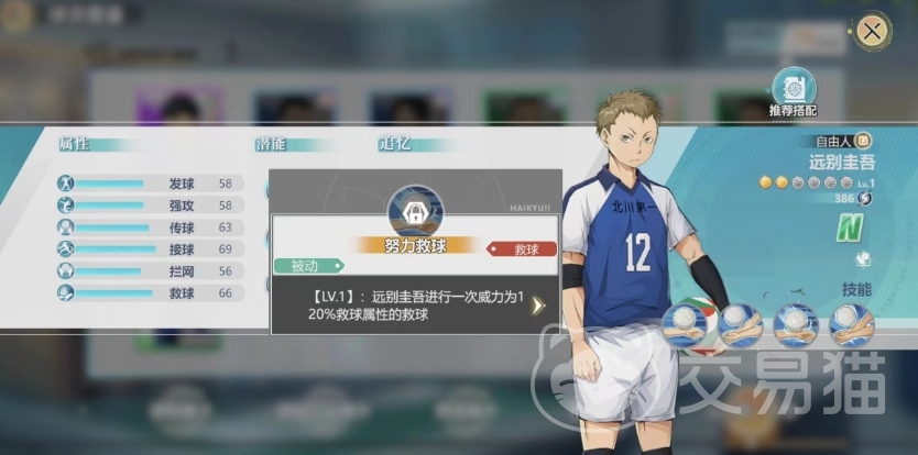 对于排球场上的自由人角色远别圭吾来说,他的四项特殊被动技能能够让他成为球场上的一个好帮手,首先他的基础救球被动技能使他在救球时的表现比其他球员更为出色,增加了5%的救球属性,这意味着在任何需要救援的球上,远别圭吾都能以更高的效率和准确度完成救球动作。