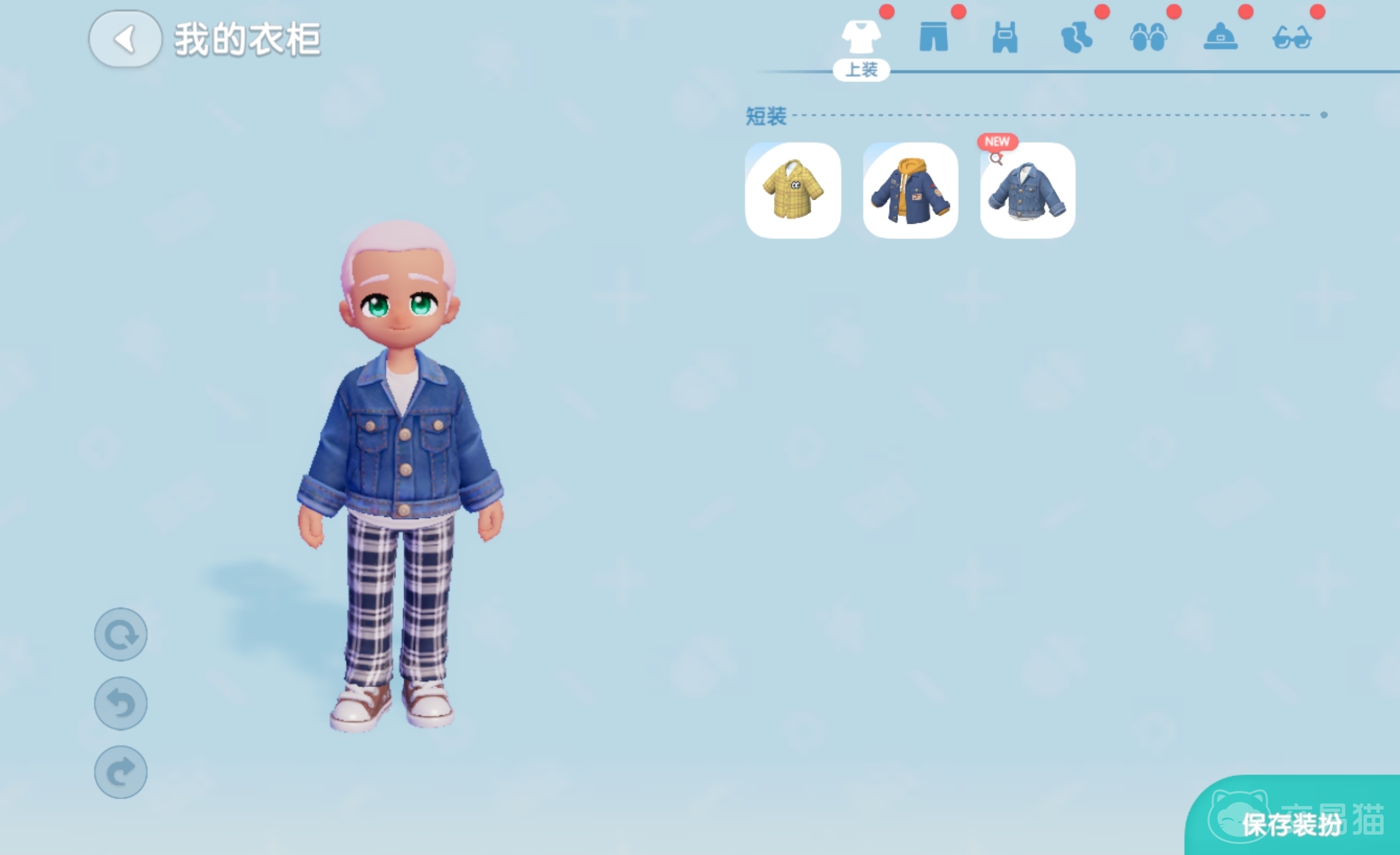 在换装界面中,系统会把你拥有的所有衣物进行分类,大家可以在细分类别中找到自己要穿的物品,穿戴整齐之后,你还可以旋转你的角色,看看是不是合身,要是不满意还可以撤销之前的选择,更换合适的衣物。