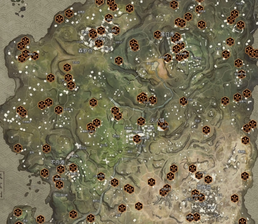 在聚窟洲中,大家明面上可以找到的资源点一共三个,这三个资源点分别是天人城、落日寺和不舟滩,这三个资源点在大家来到这洲之后,打开小地图后就能看到。