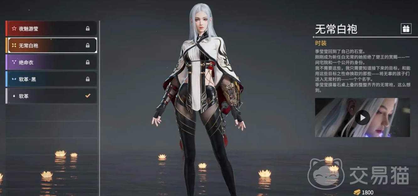 最后就是小编个人很喜欢的无常白袍,它需要花费1800金砖解锁,这款皮肤简洁大方,以白色为主色调,适合喜欢简约风格的玩家。