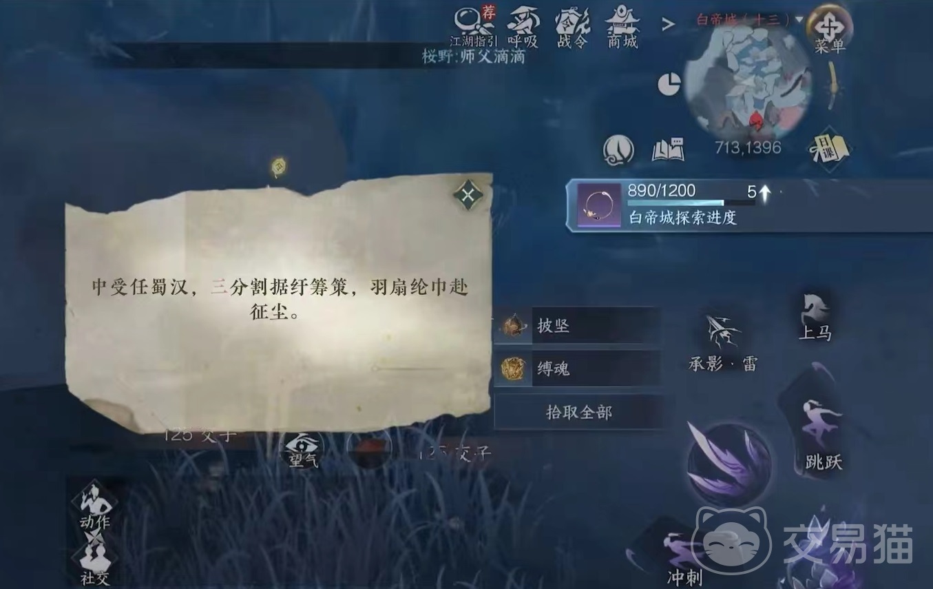 它的获取途径比较繁琐,因为涉及到多个地点,还有一些细节方面的内容。先打开白帝城地图,然后传送去饮虹池驿站。然后根据地图,来到坐标(723、1416)处,在这里使用烈火燎原,将冰块融化后开启箱子获得第1条线索。然后再来到位置(713、1395)处,继续使用烈火燎原,将第2个冰块融化,开箱子获得第2个线索。接下来需要将屏幕旋转一下,看一下上空,使用乘影剑飞上去,在这里还有第3个箱子。