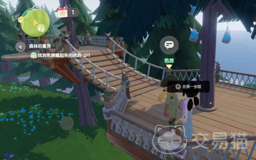 在跟随任务指引一路走来,到了凯西的目标地点却找不到凯茜。仔细一看,她可能应该是在天上。这里有一座巨大的空中天桥,是依托在拔地而起的大树上建设成的。我们要找的NPC凯茜就位于上面的台子上。天桥有两条路,左边的上去之后是无法到达凯茜位置的,只有从右边的台阶上去,转几下就可以到达了。
