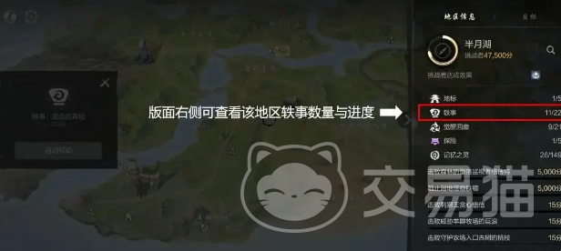 通过地图探索解锁,在打开地图之后,马上就能显示收集的速度,另外在地图上还可以看到“轶事”标记。玩家在探索跑图或者是完成日常任务时,还需要仔细的观察边上有没有可以触发的石碑。可以根据想解锁的主题,然后去完成探索。轶事碑文上面还有明确的记录,例如会记录地区的起源,还有习俗,还有很多的神秘故事。