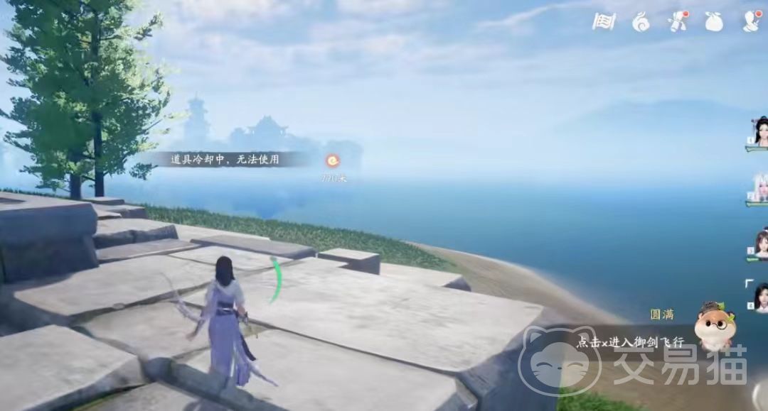 当我们解锁完了御剑飞行技能之后,只需要点击这个x按键我们就可以进行飞行了,我们直接就踩着飞剑起来了,然后呢这个飞行的话,就是正常的ad控制左右方向。
