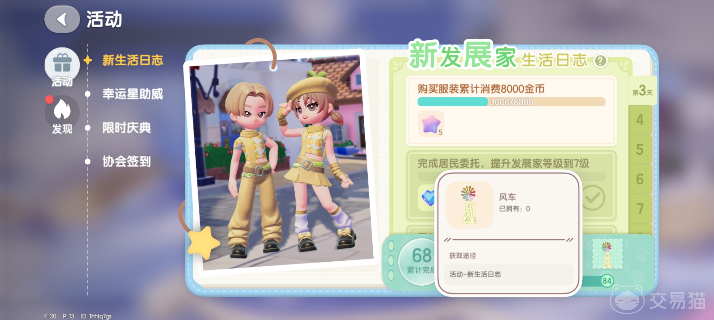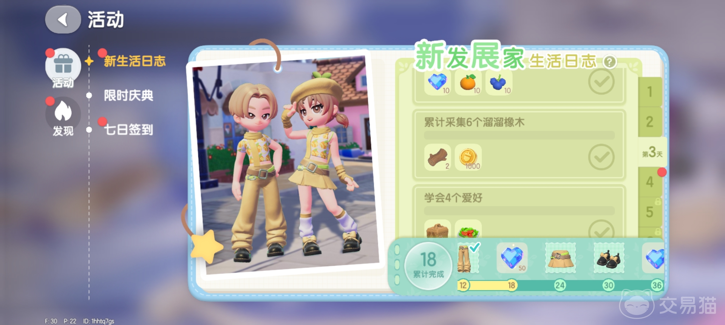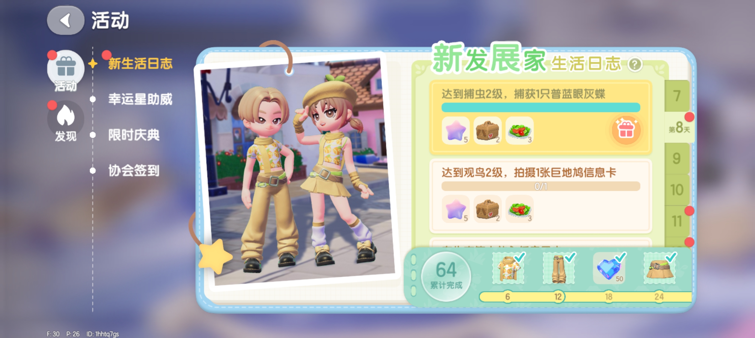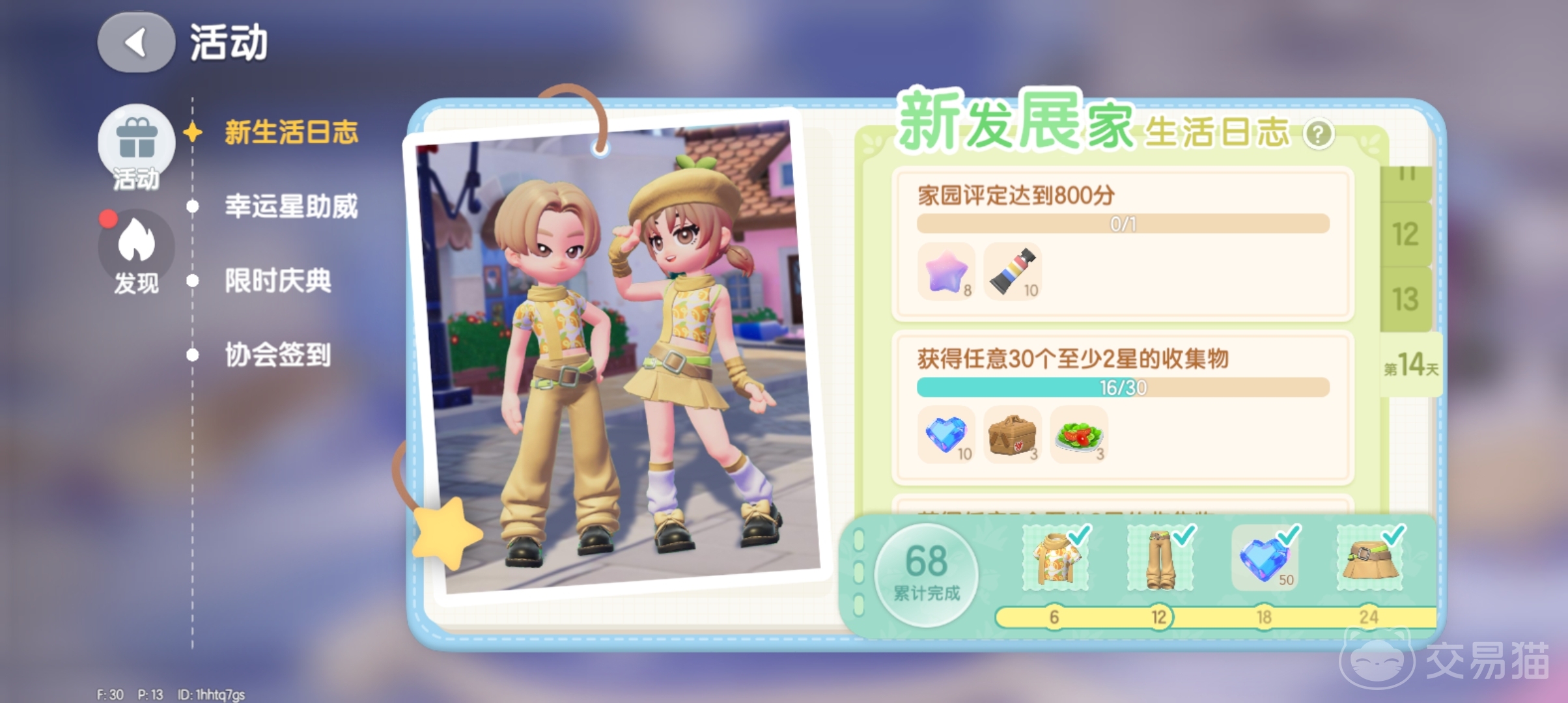 新发展家这个玩法有点类似于成长树的玩法,一共有14天的内容可以解锁。当玩家入驻游戏开始计算,每天开启新的内容,每一天需要完成的任务不一样。