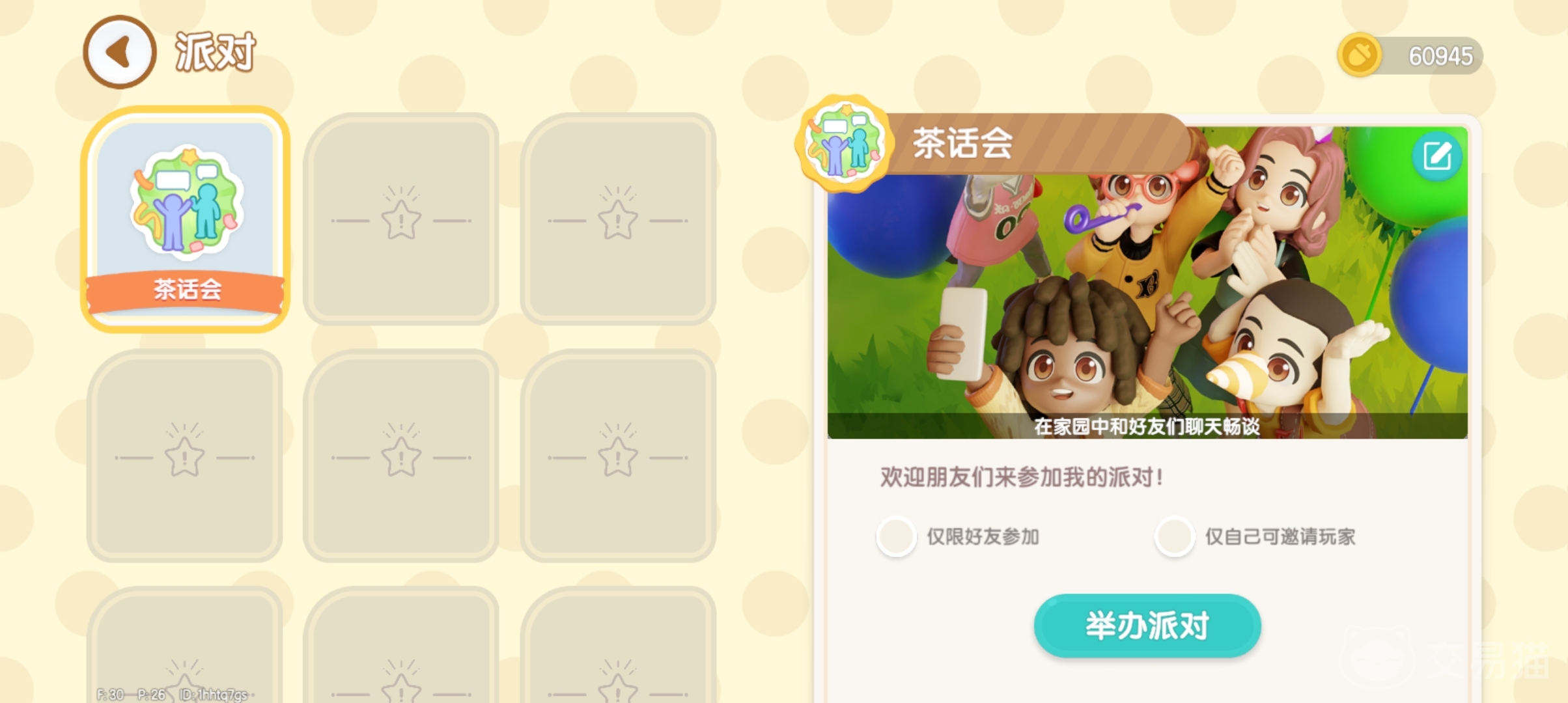 最后游戏是支持社交玩法的,玩家可以通过举办派对或者是咖啡伞道具来提升和好友之间的好感度,那么露营何尝不是一种派对的形式。