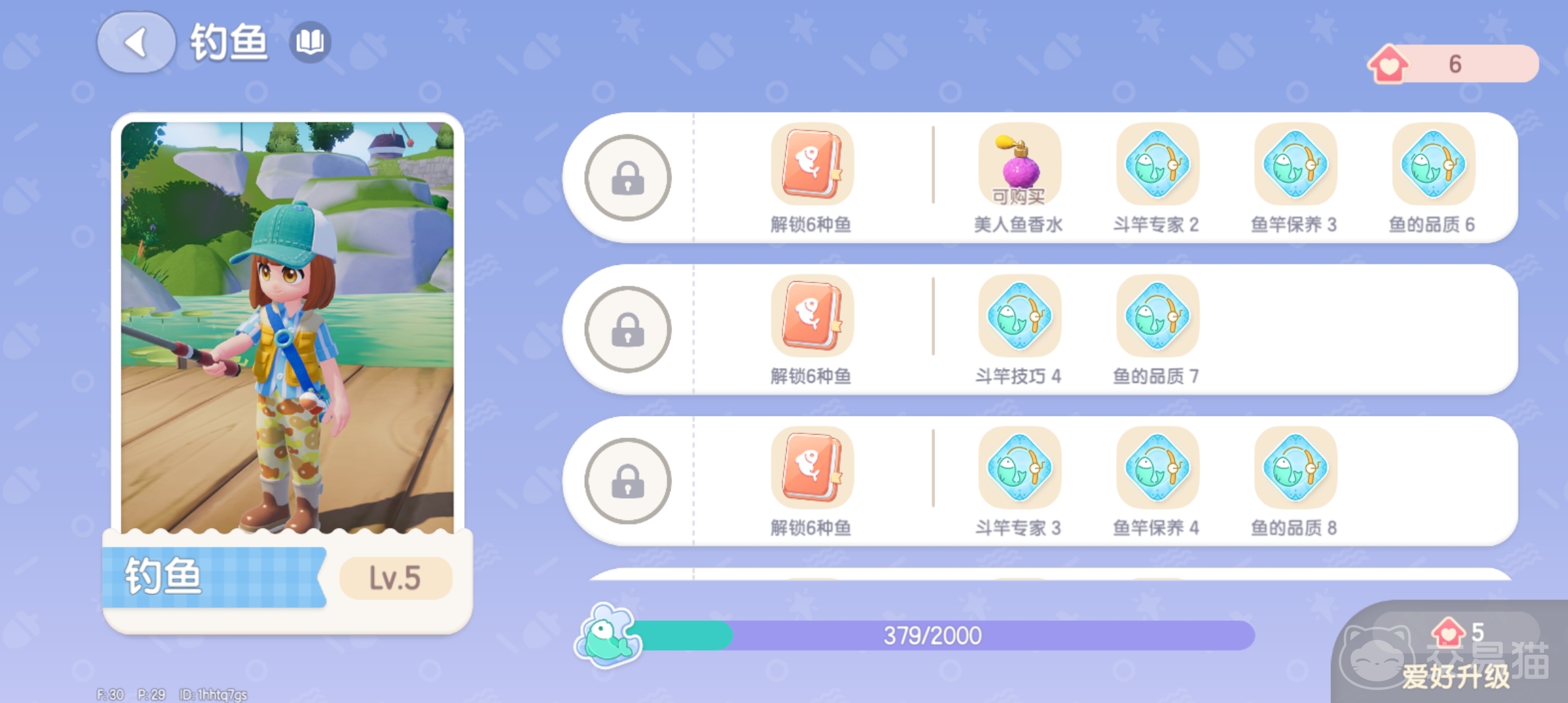 想要拥有【美人鱼香水】首先玩家的【钓鱼】爱好要升到6级,升到6级的需要2000点经验值,那玩家可能需要尽可能的多解锁新的鱼类图鉴或者是尽可能掉上来高星级的鱼类,那玩家可以在温泉领域或者是海边领域尝试一下,这两个区域获得高星级鱼类概率要大很多。