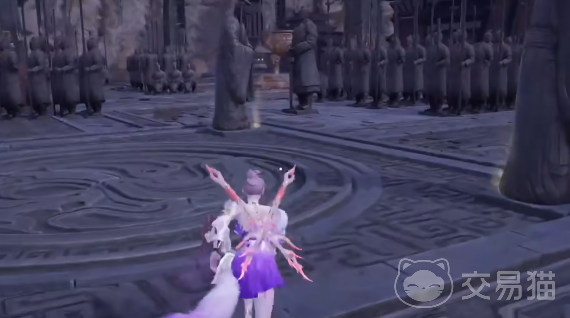 在殿前的兵马俑方阵正中间可以看到有四个文人土俑,通过击打它们可以调整他们的面向,当四个俑面向朝外的时候中间的方阵就会开启,下去以后是一个墓室,墓室里有一些金堆和绿队,站在棺材上会持续受到暗箭的伤害,如果嫌解密麻烦的话,在殿旁两侧坍塌的区域往下走有两处暗道,通过暗道也可以进入墓室,但是注意下去的时候要一直滑铲下去,路上有尖刺机关,跑过去会掉血。
