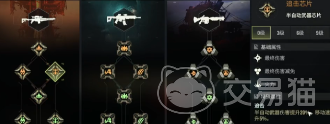 首先是半自动武器可以装备追击芯片和连诛芯片,追击芯片能提升3%的最终伤害和伤害减免,将芯片升级到9级后还能解锁潜行功能,让玩家在射击命中的时候能进行6秒的潜行,连诛芯片能让武器在命中敌人头部时有20%的伤害提升。并且有50%几率自动装填一发子弹。
