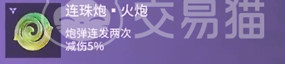 该魂玉会给火炮的炮弹附魔,之后炮弹会获得反弹效果,可以在发射后连续反弹两次然后再爆炸,另外该魂玉还可以给到装备着5%的伤害减免;第二个紫色魂玉叫做连珠炮,它可以让火炮在攻击时额外多射出一发炮弹,但是攻击伤害会下降。