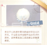 最后便是草绒球和纽扣松果,这两种中第一个愿原野草地中是最容易见到的它是绒草所结的。是制作花球的绝佳原料,所以这种原料在衣物上使用,也可以让衣物更加的柔和。第二种这种只有松树林才能发现,它可以为衣服当作纽扣。