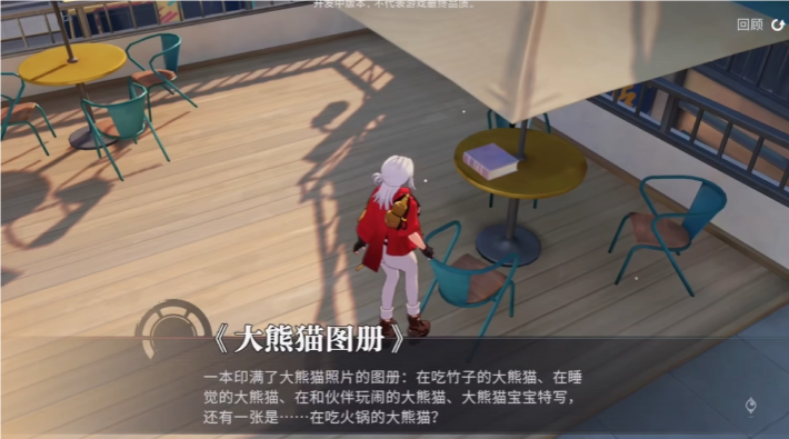 第六本的位置在车站附近的一个商店内,走进商店玩家需要找到一个长桌,长桌的附近摆放着几部扭蛋机,只要找得到扭蛋机就能自然地找到摆放在长桌上面的书籍,这本书名字叫做《邮差的竹寺其余》。第七本书的位置在一个奶茶店的位置,找到奶茶店走到二楼露天的休息区域,看到一个桌子上面摆放着我们要找的书,这本书是《大熊猫图册》