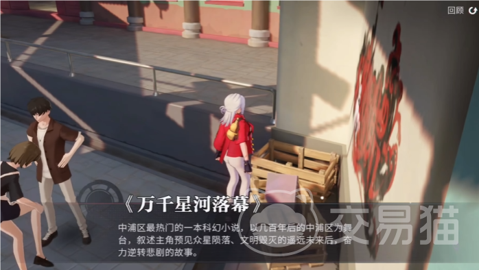 拿完上一本书之后,离开奶茶店,往下的楼梯走出去然后左拐出去到大马路的位置,随后向右走前往公交车站的位置一直往前,在第二个公交站台的隔壁有两个木箱,第八本书就在木箱当中,这本书叫做《万千星河落幕》。然后一直往左走,走到一个叫做斋斋小吃的流动摊贩前面我们可以看到另外的一本书,名字叫做《爱在酒馆闭店时》。最后一本书的位置就在这个流动摊贩左边的公交站台座位上面,这本书的名字叫做《窄宽巷夕日语》,至此为止十本在中浦区的书籍全部找到。