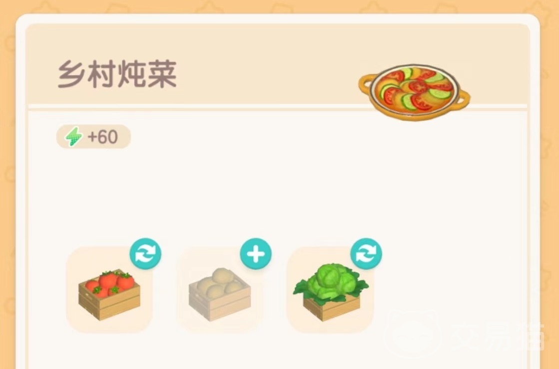 在6级菜谱中,提拉米苏属于拿铁咖啡高配版,不需要太多采集时间,缺点在于使用材料比较多,所以优先级不如上面这两个。如果大家烹饪等级没有达到6级,那么拿铁咖啡也是很不错的选择,咖啡豆加牛奶就可以制作出来。如果手中的菜比较多,那就去做乡村炖菜,收益也很不错。
