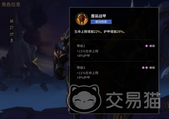并且他这个有高额的攻击伤害和眩晕概率,同时附加32%的免伤效果,为这个角色提供了更强的生存能力。其次,他的被动技能是他整个防御体系的核心技能,他通过提升自己生命值的上限和护甲值,让他成为了游戏中肉值最高的坦克。在他的技能达到了三级时。可累加获得额外的生命值和额外的数价值,这让他在战斗中越打越强,越打越肉。