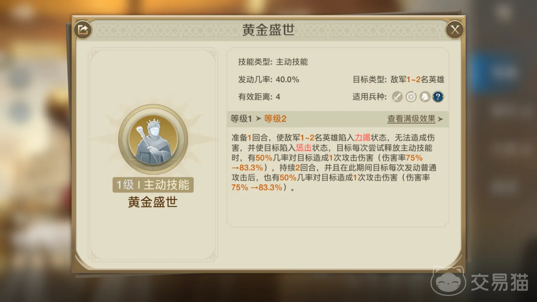 技能方面对比,华帝拥有一个强大的控制效果的销兵偃武,能够在开局前两个回合就控制对手单位,可以压制对手的治疗和输出效果;而黄金王的技能主要是以攻击以及突击为主了,比较适合快攻类型的战斗,如果碰上华帝,那么可能会稍微显得被动一些。