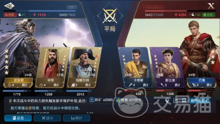 在双方对战表现来看的话,华帝在战斗中以其高属性和控制,总是能够占据先手和主导的地位,对敌人形成压制,他的专属兵种对付骑兵有明显的压制效果,让战斗力进一步增强,黄金王主要就是机动性非常强。