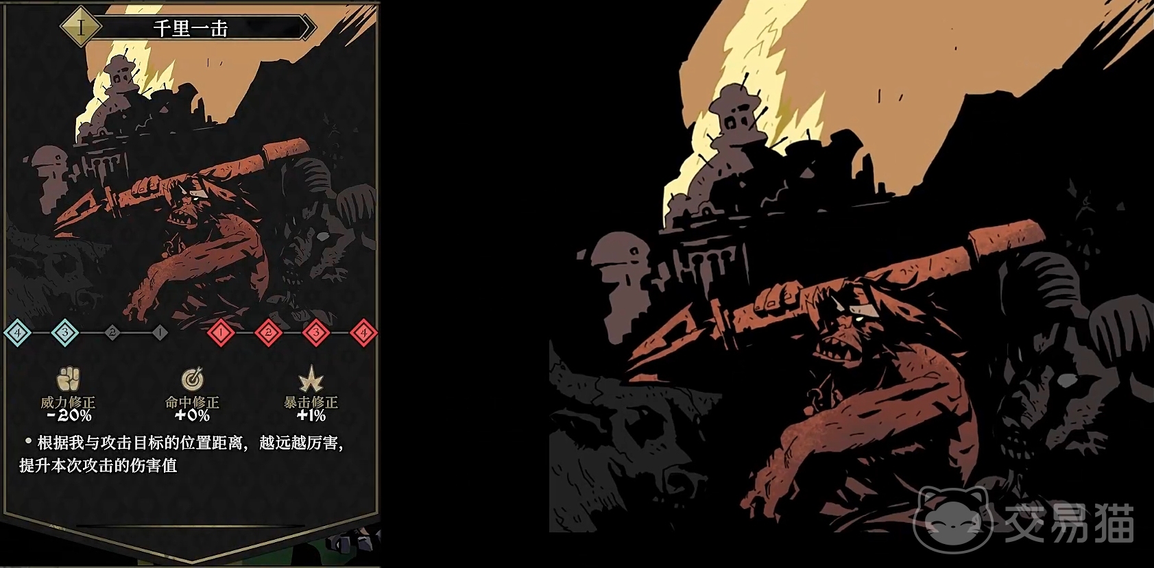 甲米乌在游戏中也叫做长手炮,基础数值上面只有血量32属于中等,定位为后排输出职业,他的技能设计是跟威力有关的,第一个技能是千里一击,使用的时候技能的威力修正高达50%,这意味着当甲米乌与攻击目标的距离越远时,其攻击的伤害值就越高,然而这种强大的输出能力是以牺牲5%的命中修正为代价的,此外暴击修正5%表明甲米乌具有不错的暴击实用效果,在实战中,利用甲米乌的这一技能可以对远处的敌人造成致命伤害,特别是在开阔的战场中。