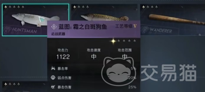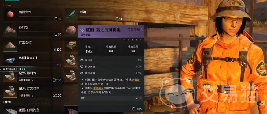 与玛德琳交谈,打开对应商店,可以看到最下方就有白斑狗鱼和霜之白斑狗鱼的近战武器蓝图,前者要5个狗鱼兑换,后者要10个狗鱼兑换,兑换获得蓝图后,再搭配1条狗鱼、10个冰块就可以制作该武器。